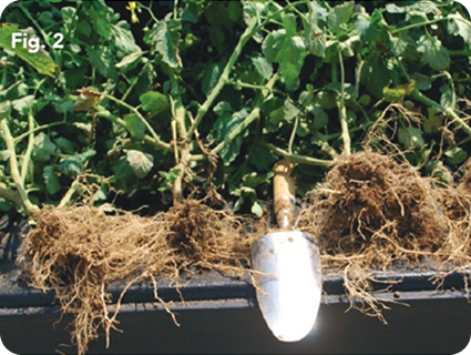 The increased plant growth results from increased root mass in plants treated with Quantum Growth. This picture shows the difference between treated and control.